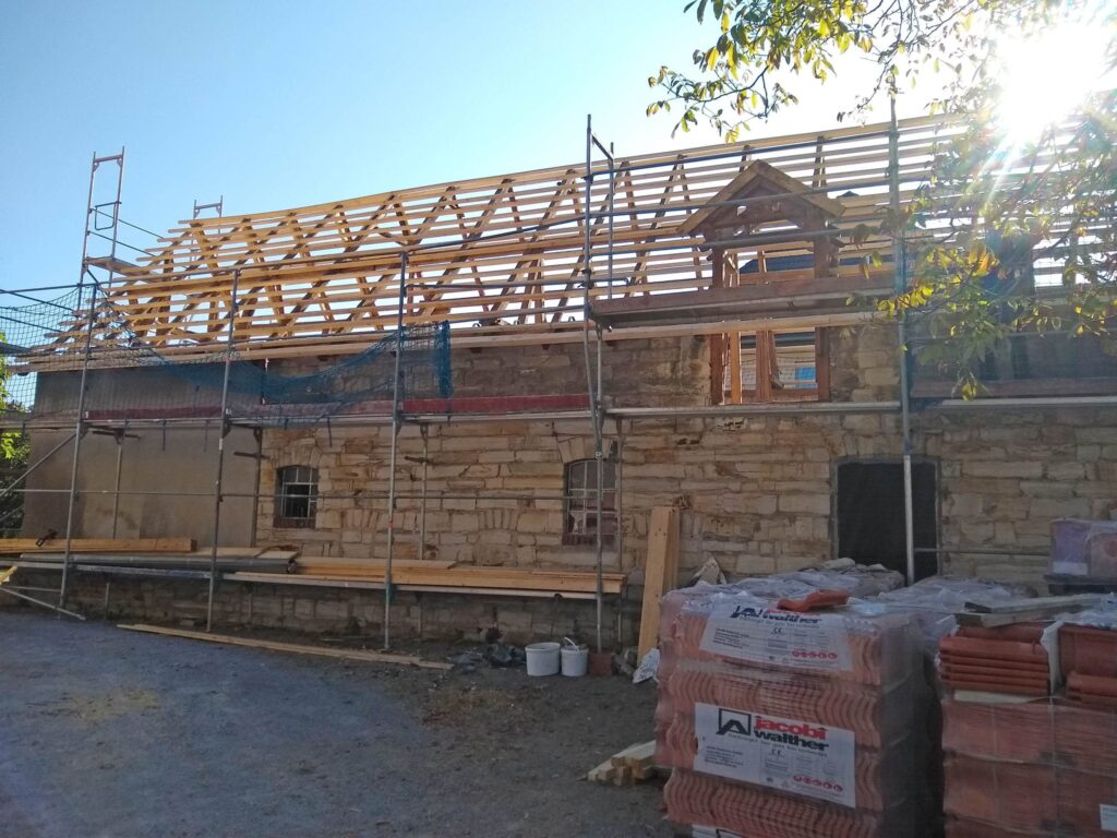 Diese ist regensicher, auch wenn oben noch keine Ziegel liegen.